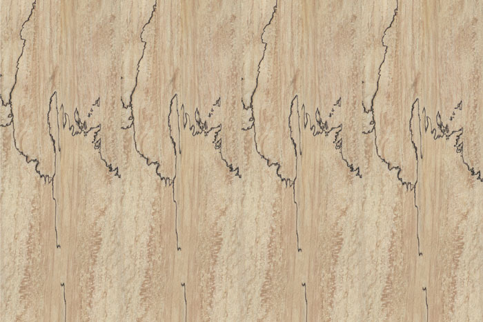Beim Flach-Messern zeigen die, an der Stammaußenseite anfallenden, Furnierblätter eine lebhafte Fladerzeichnung, denn die Vegetationszonen (Jahresringe) werden hier in sehr flachem Winkel angeschnitten. Je näher der Schnitt an den Stammkern heranrückt, desto mehr werden die Jahresringe im rechten Winkel angeschnitten, die Furniere zeigen eine zunehmend streifige Struktur.