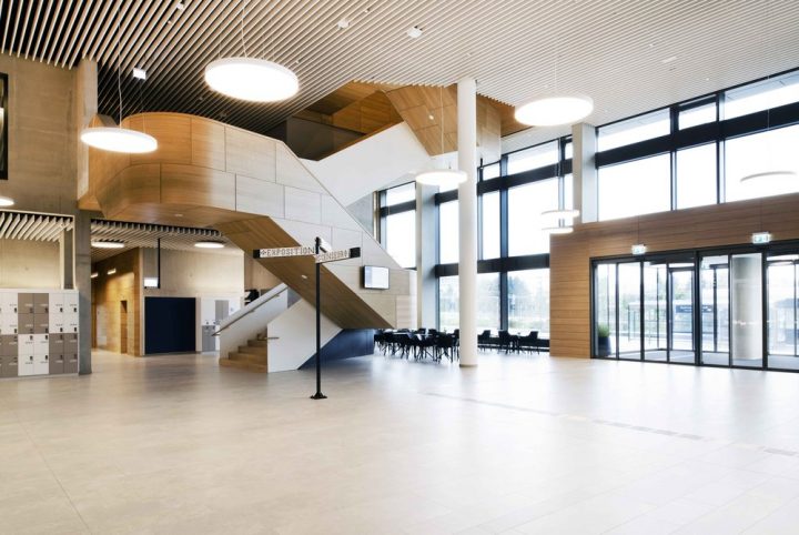 Sehr überzeugend ist zudem das Technik- und Energiekonzept. Es vereint die Grundprinzipien, die für öffentliche Gebäude in Luxemburg angewandt werden: Eine sehr gute Wärmedämmung und Winddichtigkeit der Gebäude-Außenhülle, wertiger Sonnenschutz und eine sogenannte thermische Trägheit, die dazu führt, dass Wärme im Winter gespeichert und Temperaturspitzen im Sommer reduziert sind. Zusätzlich wurde ein innovatives System aus natürlicher Belüftung und Kühlung entwickelt, um erneuerbare Energie bestmöglich zu nutzen und den Energieverbrauch so niedrig wie möglich zu halten. Künstliches Licht wird beispielsweise lediglich als Unterstützung zur natürlichen Belichtung eingesetzt.
