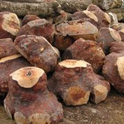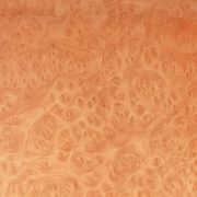Wie die zarten Spitzen kleiner Hügel erscheinen die zahlreichen Maserkerne, die sich auf dem Furnierbild der Madrona Maser häufig in kleinen Gruppen finden. Dazwischen sind teilweise leicht angedeutete Wellen zu erkennen, die aufgrund des Jahrringverlaufs entstehen. Die von orange-braun bis blass rötlich-braun nuancierende Farbe erinnert an ein warmes und freundliches Aquarellbild und an das sehr ähnliche Furnierbild der Platanen Maser. Häufig kommt es zu blau verfärbten Teilen.