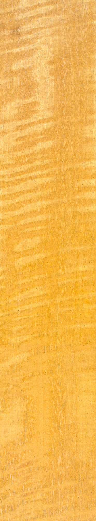 Vereinzelt kommt es beim goldgelben Movingui zu grob- bis feinwelligen Faserverläufen, die zu der typischen Riegeltextur führen. Auf Grund der Faserabweichungen entstehen auf den Furnierbildern wie Wellen anmutende Querstreifen, die den satinartigen Glanz dieses Holzes geheimnisvoll betonen, und die das Gesamtbild dieses exotischen Furniers beleben.