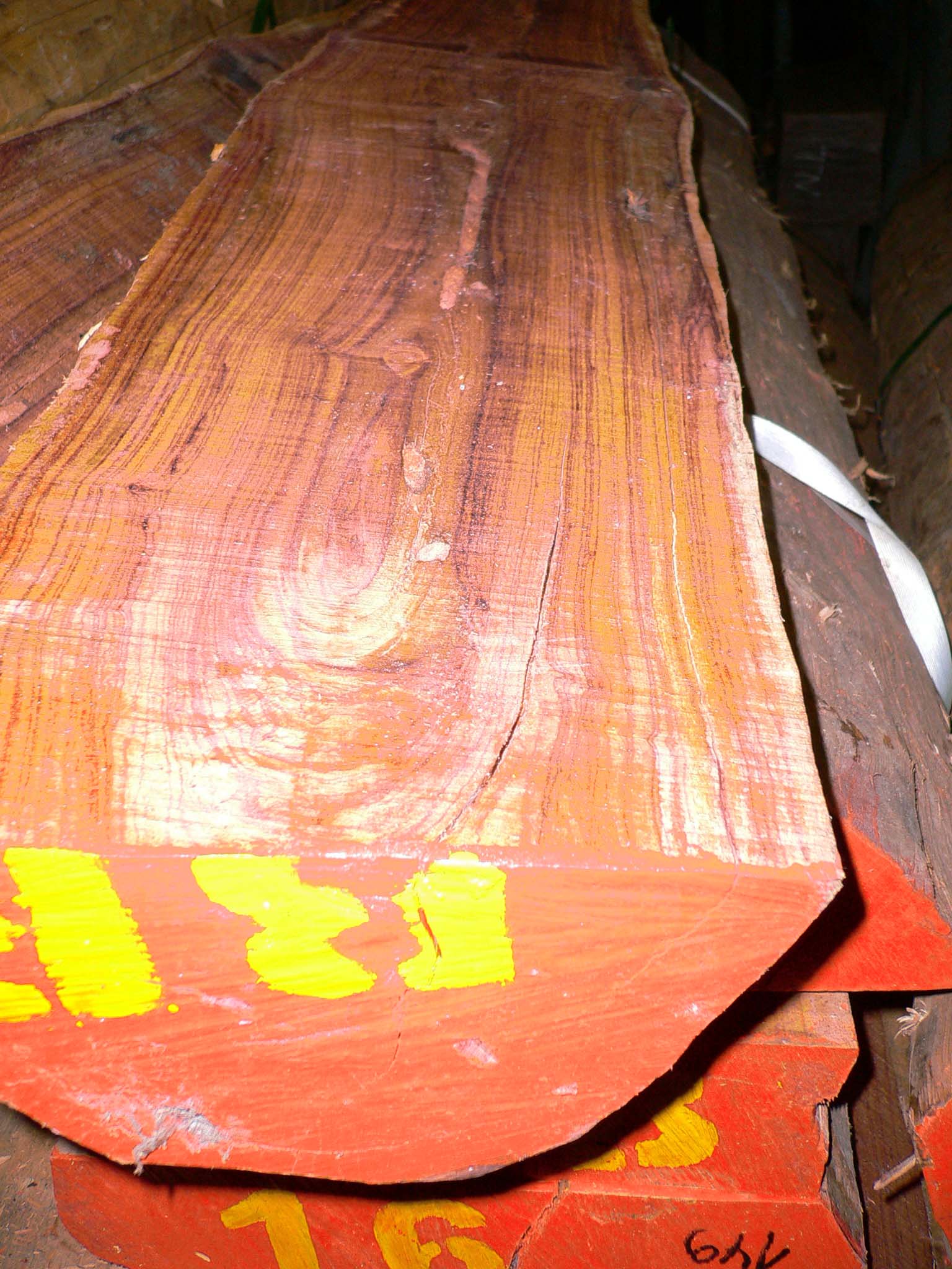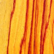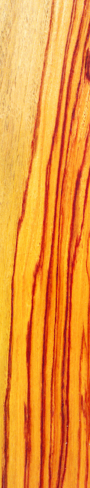 Dem Betrachter präsentiert sich das Bahia Rosenholz mit seinen Farbkontrasten in einem auffälligen und sehr dekorativem Bild. Beherrscht wird dieses Bild von einer ungewöhnlichen Farbkombination mit einer braungelben Grundfarbe und dazu deutlich abgesetzten dunkelrosa bis rötlichen Streifen bzw. Blumen. Beste Wirkungen dieses sehr harten und feinen Holzes erzielen polierte Oberflächen, die die Farbkontraste am schönsten zur Geltung bringen. Eine Behandlung der Oberfläche mit Lichtschutzpigmenten ist auf alle Fälle empfehlenswert, um die schöne Färbung zu erhalten.